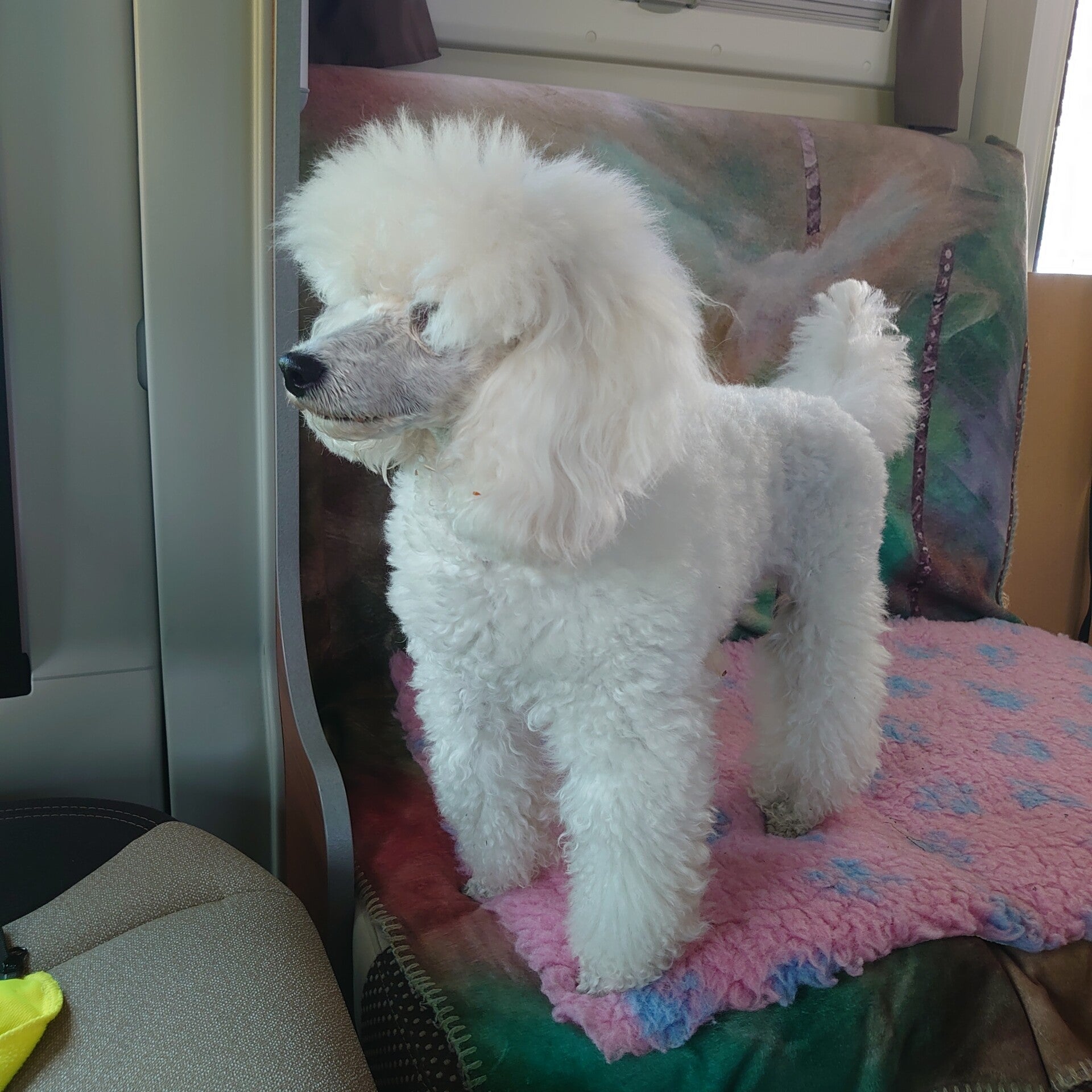 Den 8 maj -22 hämtar vi hem lilla prinsessan., ca 7 mån ung. Hon var då lite kortpälsad, men på några månader framåt, gick det att få till en mer pudlig frisyr. därefter har åren gått, och Nelly har blommat ut till en riktig liten fröken, matte testar olika frisyrer på mig, och Nelly har även varit på officiell utställning, för att bli ommätt från mellanpudel (som hon fötts som) till Dvägpudel, då hon stannade i växt på 33,5 cm mankhöjd, (gränsen på Dvärg är 28-34,99) (Mellan 35-45 cm)