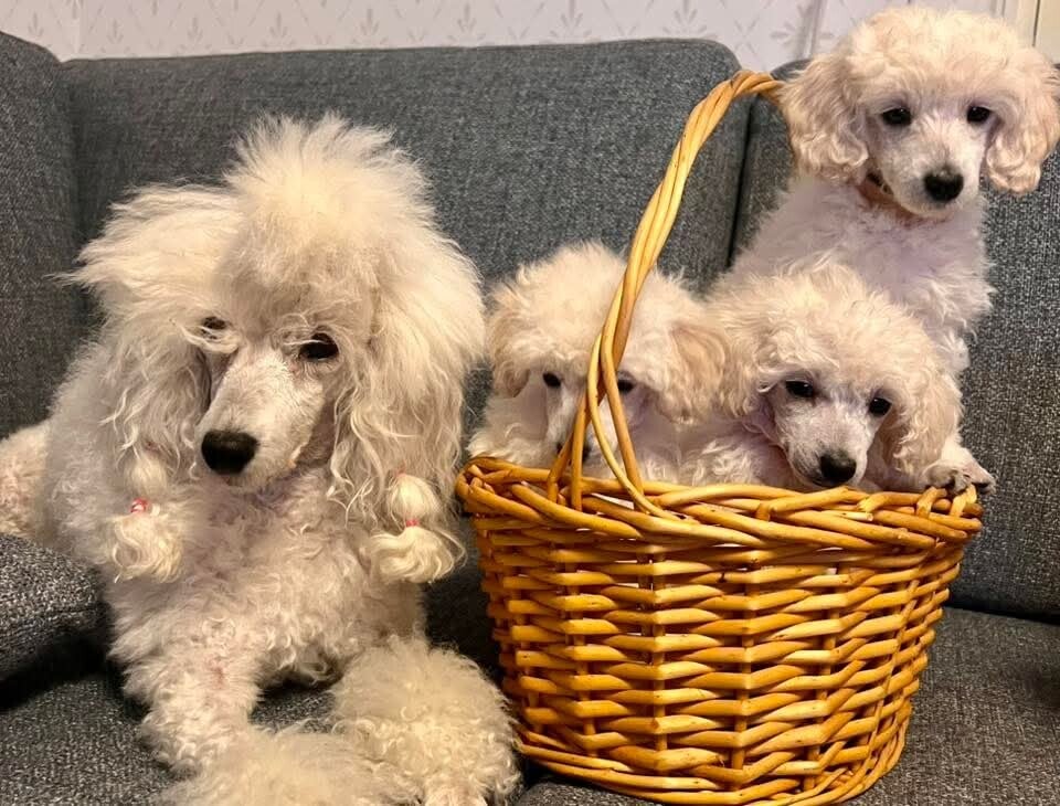 Den 8 maj -22 hämtade vi hem lilla prinsessan., ca 7 mån ung. Hon var då lite kortpälsad, men på några månader framåt, gick det att få till en mer pudlig frisyr. Därefter har åren gått, och Nelly har blommat ut till en riktig liten fröken, matte testar olika frisyrer på mig, och Nelly har även varit på officiell utställning, med ok resultat blev Very Good, för att bli ommätt från Mellanpudel (som hon fötts som) till Dvägpudel, då hon stannade i växt på 33,5 cm mankhöjd, (gränsen på Dvärg är 28-34,99) (Mellan 35-45 cm)