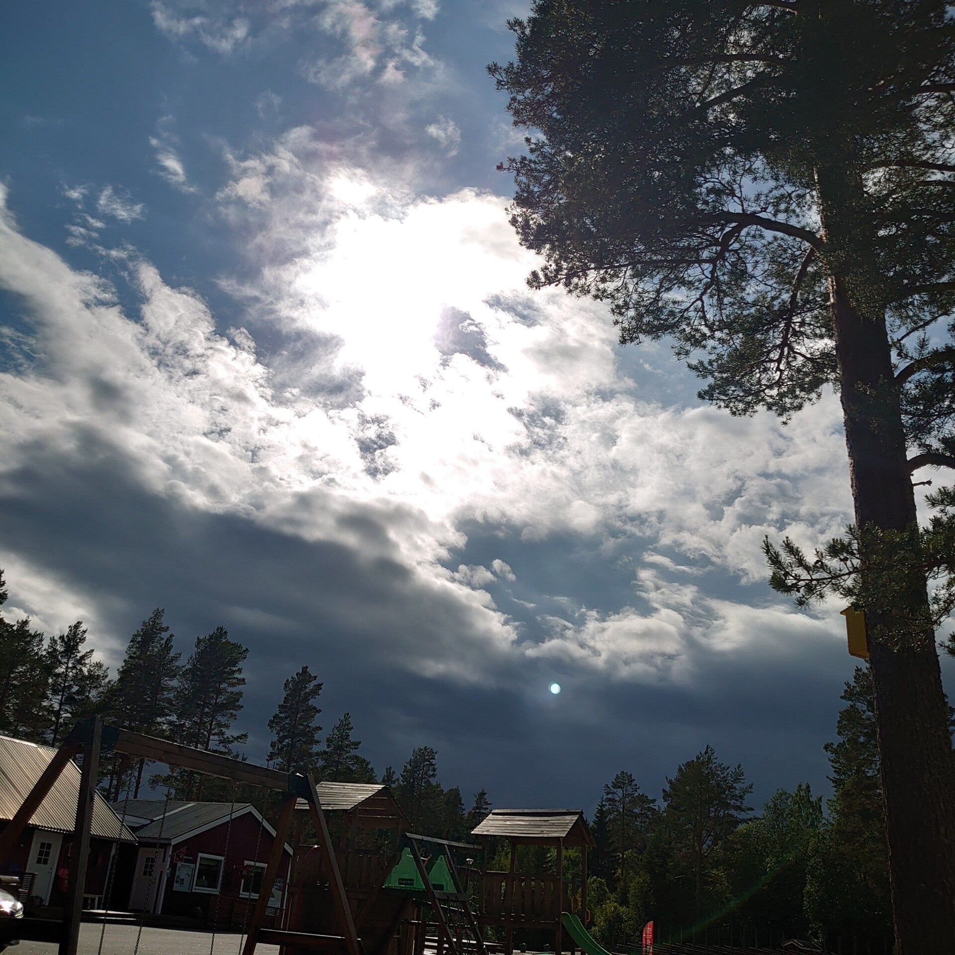 240502Från ett +16 i Vimmerby, efter ca 4 timmar bakom ratten, har jag och mina passagerare landat på Haverdals camping i Halmstad, +26, jag har retinerat till skuggan, Nelly gick in, och husse pinar sig i solen.. Blåser som attan, så det går inte att använda markisen.. Här stannar vi till på söndag iaf. Här finns både en enklare agilitybana, hundrastgård och promenadavstånd till matbutik.